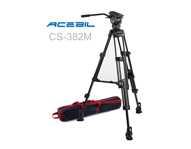 The CS-382M Professional Tripod System from Acebil includes a 75mm CH3 fluid head, T752 aluminum tripod, MS-3 mid spreader, and an S-52 carry case. The tripod features a two-stage design and aluminum construction that supports loads up to 11kg / 24.2lb. It provides a height range from 81-165cm / 31.9”-65” and comes equipped with a sliding quick-release plate and pan bar.