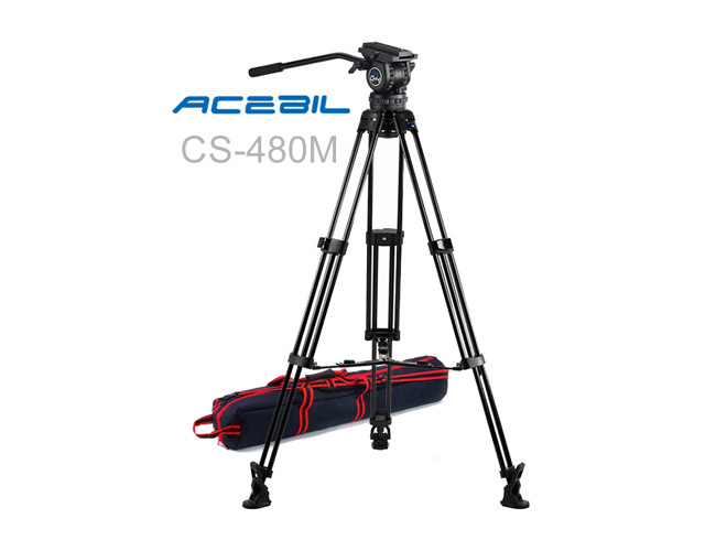 The CS-480M Professional Tripod System from Acebil includes a 100mm CH4 fluid head, T1000 aluminum tripod, MS-5 mid spreader, and an S-50 carry case. The tripod features a single-stage design and aluminum construction that supports loads up to 12kg / 26.4lb It provides a height range from 99-160 cm / 39”-63” and comes equipped with a sliding quick-release plate and pan bar.