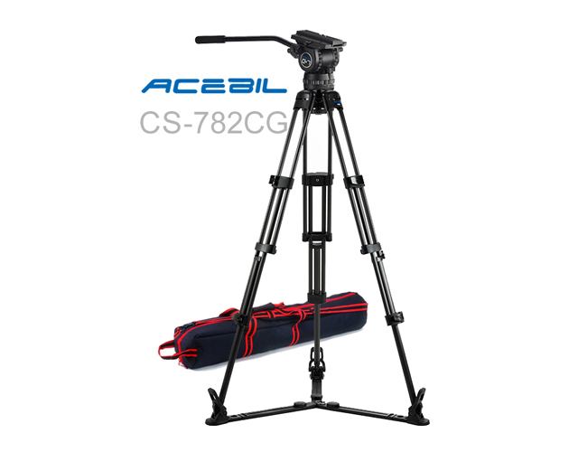 The CS-782CG(F) Professional Tripod System from Acebil includes a 100mm CH7(F) fluid head, T1002C carbon fiber tripod, GS-3 ground spreader, and an S-52 carry case. The tripod features a two-stage design and aluminum construction that supports loads up to 20kg / 44lb. It provides a height range from 63-171cm / 24.8”-67.4” and comes equipped with a sliding quick-release plate and pan bar.