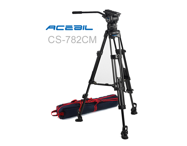 The CS-782CM(F) Professional Tripod System from Acebil includes a 100mm CH7(F) fluid head, T1002C carbon fiber tripod, MS-5 mid spreader, and an S-52 carry case. The tripod features a two-stage design and aluminum construction that supports loads up to 20kg / 44lb. It provides a height range from 82-166cm / 32.3”-65.4” and comes equipped with a sliding quick-release plate and pan bar.