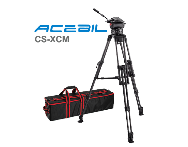The CS-XCM Professional Tripod System from Acebil includes a 150mm CHX fluid head, T3002C carbon fiber tripod, MS-7 mid spreader, and an SC-110 carry case. The tripod features a two-stage design and Carbon Fiber construction that supports loads up to 45kg / 99lb. It provides a height range from 85-170cm / 33.5”-66.9” and comes equipped with a sliding quick-release plate and pan bar.