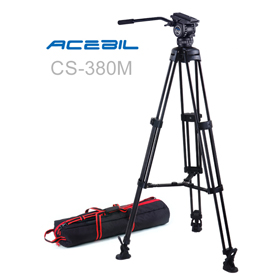 The CS-380M Professional Tripod System includes a 75mm CH3 fluid head, T750 aluminum tripod, MS-3 mid spreader, RF-3 rubber feet and an S-50 carry case.