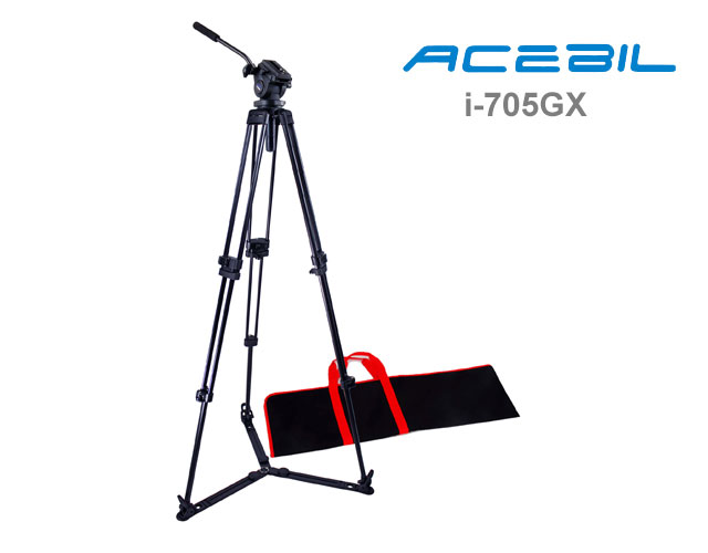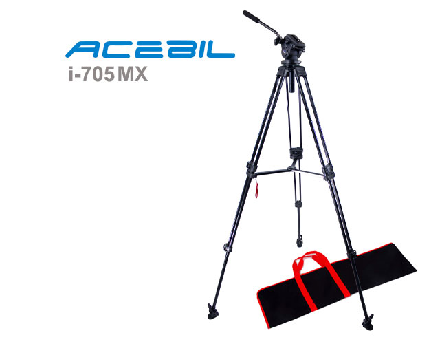 The Acebil i-705DX(N) Prosumer Tripod System includes a 2 stage, lightweight aluminum tripod, the standard H705 fluid head, a middle brace, and the S-9 carry case.