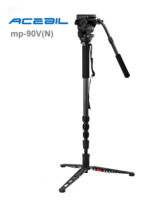 mp-90V(N) / S-11This mp-90V(N) Carbon Fiber Monopod from Acebil combines the mp-C200(N) monopod with the H805 video head. It can hold up to 5kg / 11.0lb, and extends from 87-150cm / 34.2-59”. The improved floor spreader provides added stability, and its ball joint allows for smooth pan and tilts. Its four sections are secured in place with twist locks, and a foam grip and wrist strap add comfort and security. The H805 video head has a tilt angle of +90° / -60°m, and its included quick-release plate has a 1/4" slide range. A soft carrying case is included to protect the MP-90V(N) when not in use.