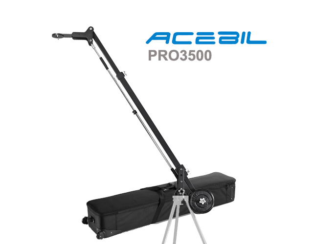PRO3300The Acebil PRO3500 Jib Arm is equipped with a telescopic arm that is extendable 20-300cm / 8-118". It allows you to achieve higher angles for shooting. This portable, lightweight jib arm is quick and easy to set up, and can be easily transported in a carrying case with wheels.
