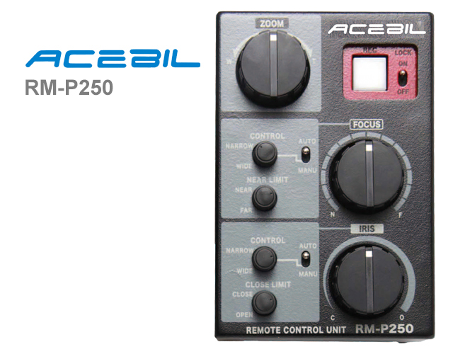 Pro Zoom / Focus / Iris Control BoxThe Acebil RM-P250 Lens Remote Control Box for Panasonic Handheld camcorders allows you to control the lens from a remote location up to 164' away. The zoom, focus, and iris can be controlled via this unit. It features a 9 pin Sub-D and 2 phone plug connectors to connect to your Panasonic Camera. The RM-P250 comes with a 2.5mm phone plug cable for zoom control, and a 3.5mm mini phone plug cable for focus / iris control./p>