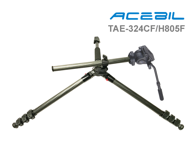 TAE-324CF/H805FThe TAE-324CF/H805F Professional Photo Tripod System features a 180 degree folding design for traveling. Built-in bubble level for precise positioning. Friction Control System allows you to modify the level of friction on the ball to accommodate changing equipment weight. Adjustable leg angles can be independently locked into place at three different angles and a Multi-Angle Central Column. Spring loaded weight hook allows assitional weight mounting stability during windy conditions. Alloy body minimizes weight. Dual threaded head platform assures compatibility with almost any tripod head and camera. Alloy body with carbon filber leg pipe & adjustable foot spike. Features large foam grips on all three legs for all-weather use.