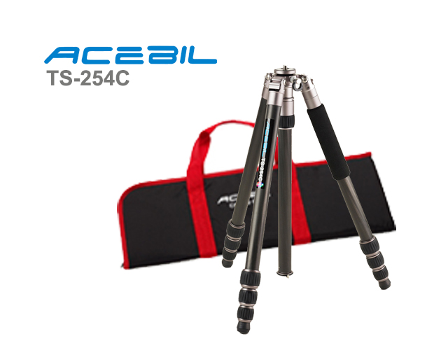 The TS-254C Professional Photo Tripod System features a built-in bubble level for precise positioning. A reversible center column and multi position legs allow for low angle shooting. Adjustable leg angles can be independently locked into place at three different angles. Spring loaded weight hook allows assitional weight mounting stability during windy conditions. Alloy body minimizes weight. Dual threaded head platform assures compatibility with almost any tripod head and camera. Silver color alloy body with black color carbon filber leg pipe. The leg with logo printed can be removable and use as the monopod. Includes an S-2 carry case.