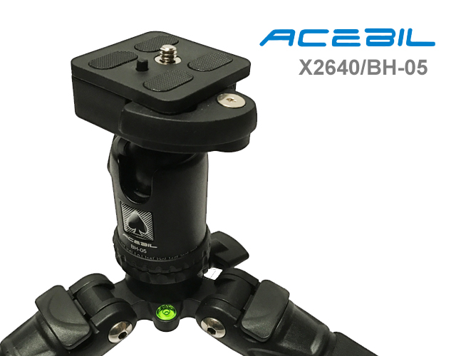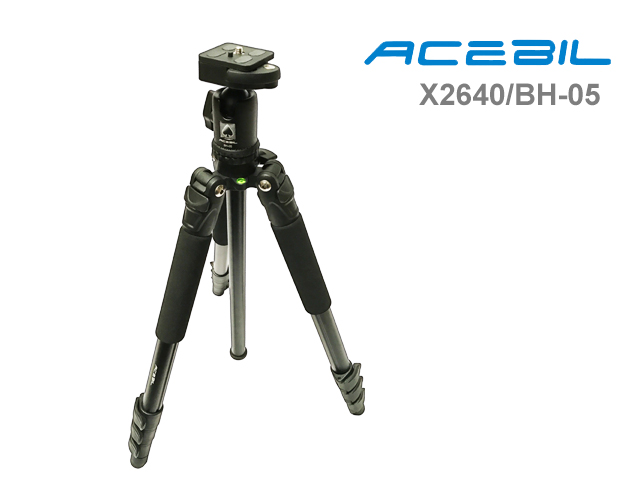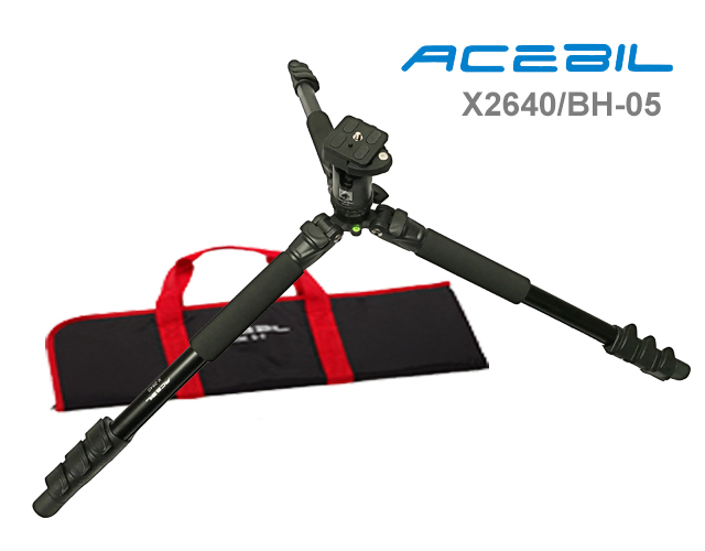 The X2640/BH-05 Professional Photo Tripod System features adjustable leg angles can be independently locked into place at three different angles. Built-in bubble level for precise positioning. Large foam grips on all three legs for all-weather use. Quick-flip leg locks. Spring loaded weight hook allows assitional weight mounting stability during windy conditions. Alloy body minimizes weight. Dual threaded head platform assures compatibility with almost any tripod head and camera. Includes an S-2 carry case.